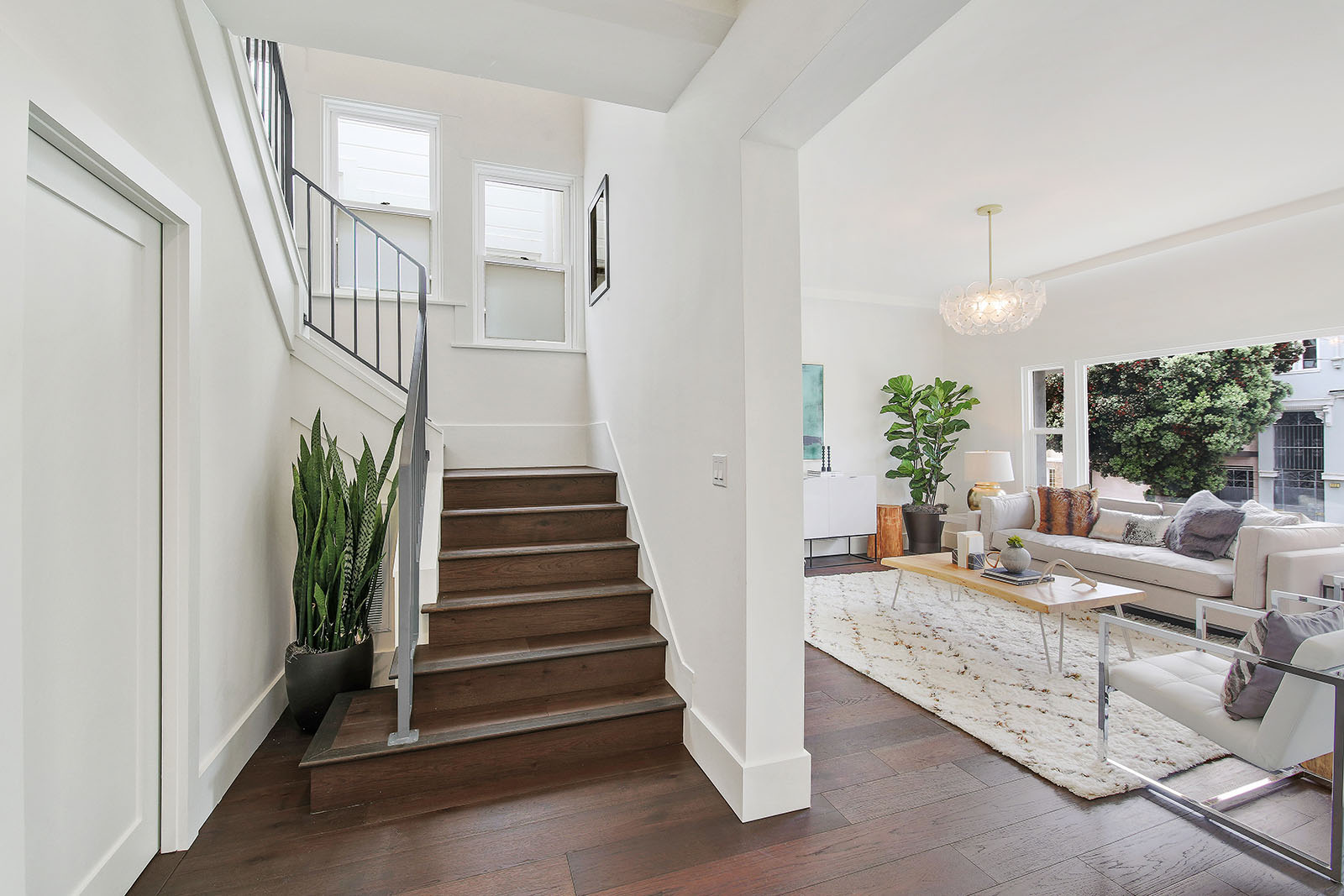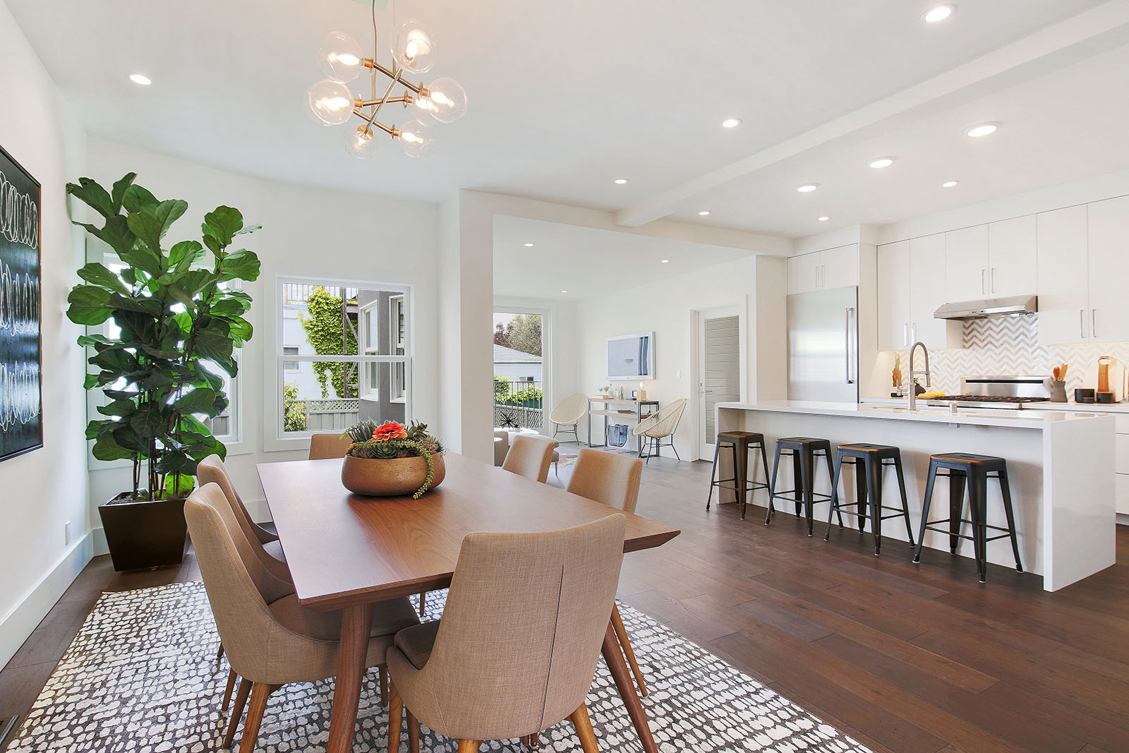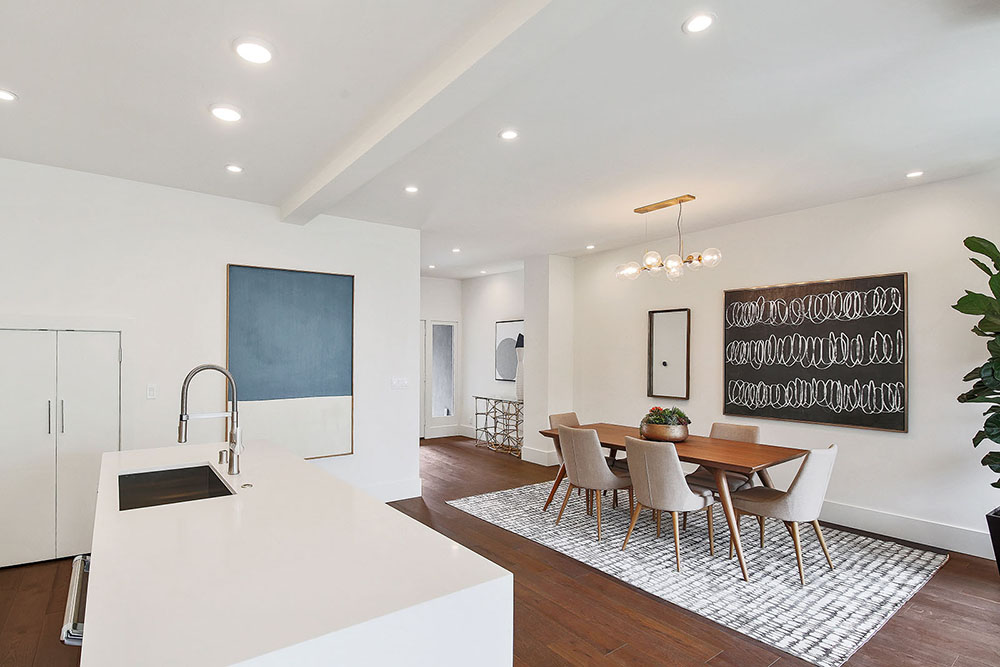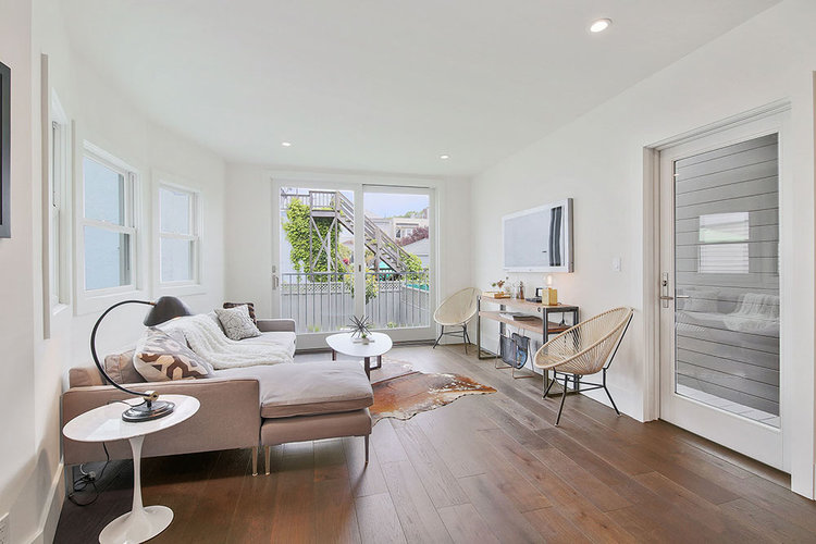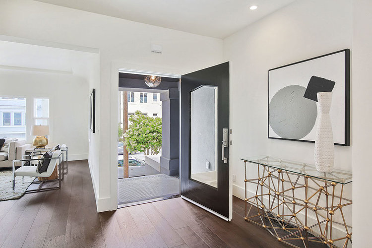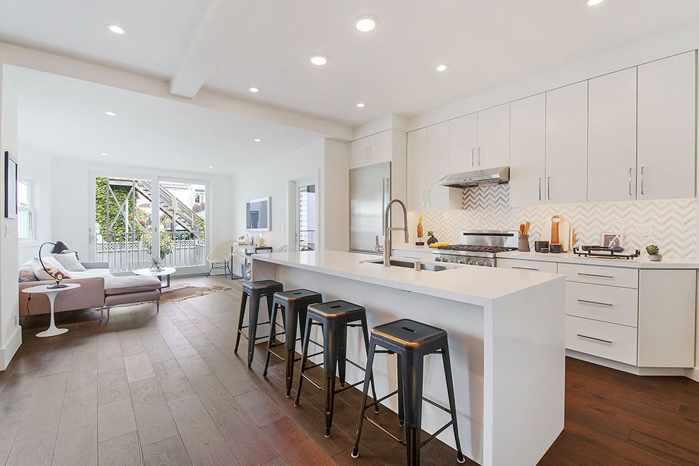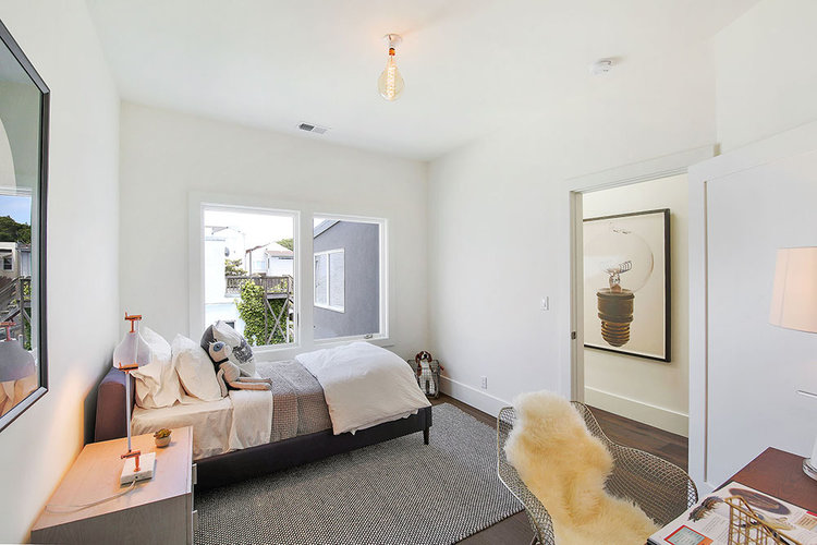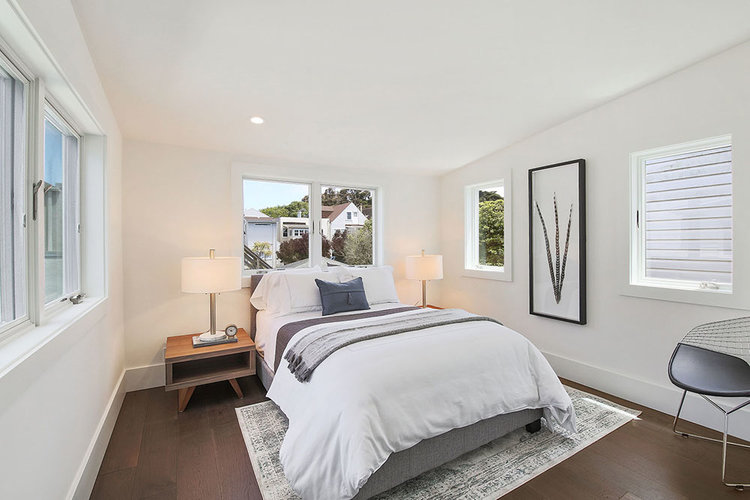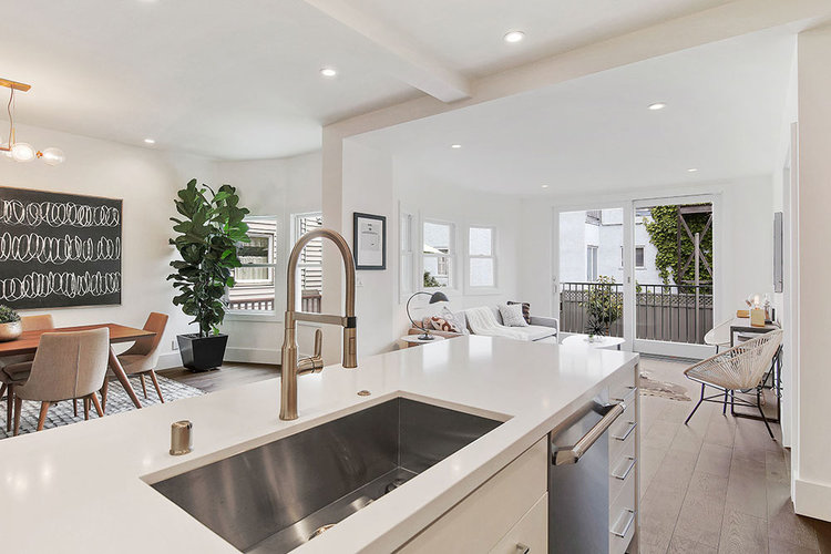 This Lake District home in San Francisco was a developer's down-to-the-studs project, reimagined and designed by Soledad Alzaga Interior Design with help from Studio Terpeluk architects. We reconfigured and opened up the spaces to create a seamless flow between rooms for an open concept floor plan. Custom cabinets, finishes and a big long island were added to the kitchen. Additional bathrooms and rooms were added, transforming the house from a three-bedroom, one-bathroom layout to a four-bedroom, two-and-a-half-bathroom home, significantly increasing both space and value. The basement garage was transformed into a livable space with a laundry room and an office opening to the backyard. The project also included landscaping to complete the home's transformation.