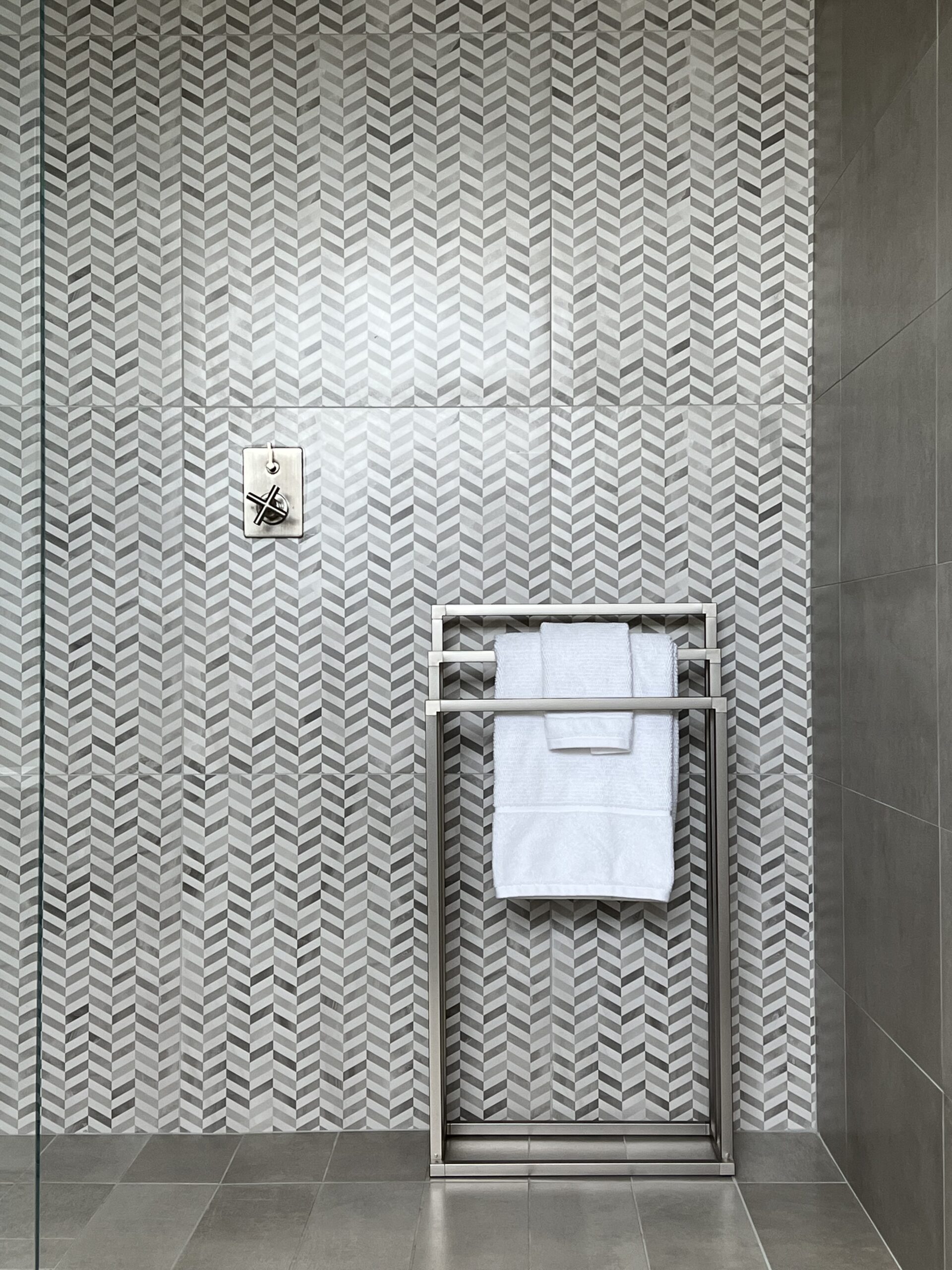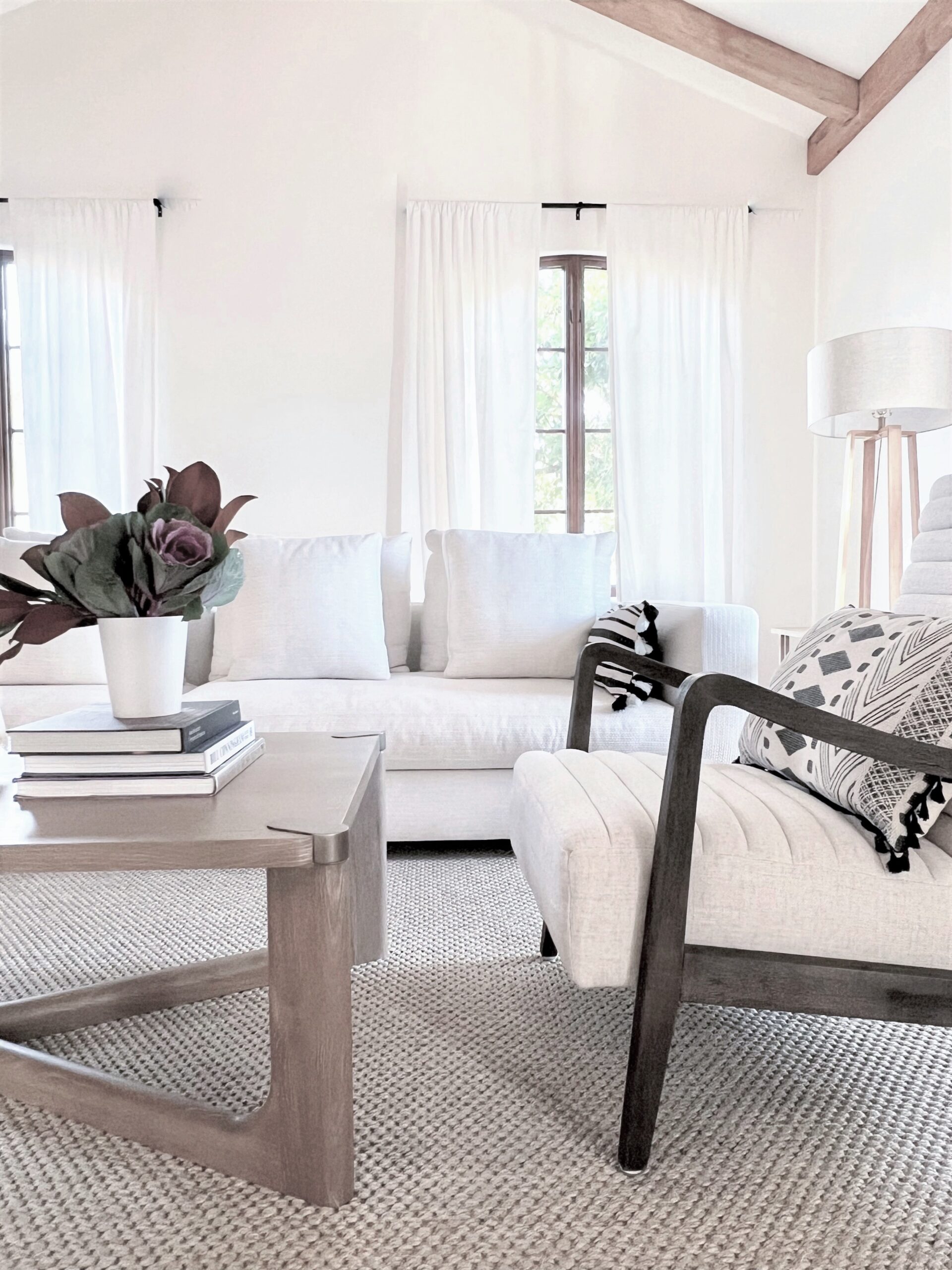 The renovation included all aspects of the finishes and furnishings. We updated bathrooms, refinished and lightened the ceiling beams, and replaced the wall-to-wall carpet with wide plank white oak floors. The old ornate fireplace was replaced with a modern see-through gas fireplace, enhancing the flow between spaces. The result is a light, airy, and welcoming home perfect for the family to enjoy and entertain.