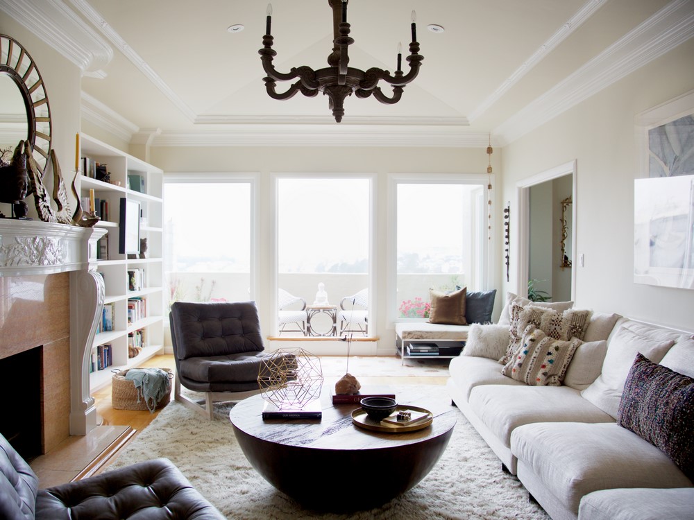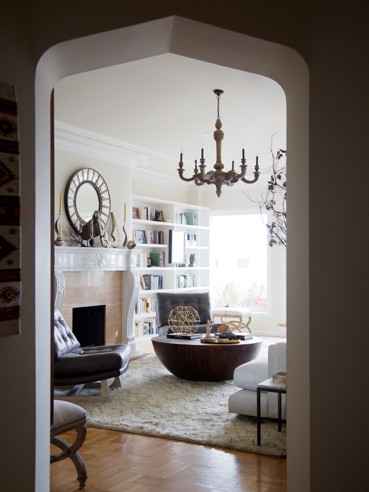 This sunny apartment in San Francisco's Pacific Heights neighborhood was designed by Soledad Alzaga Interior Design to create an intimate retreat, perfectly tailored to the client's desire to be surrounded by books and personal treasures. The design features an eclectic mix of neutral layers, textures, custom made furniture and vintage finds.