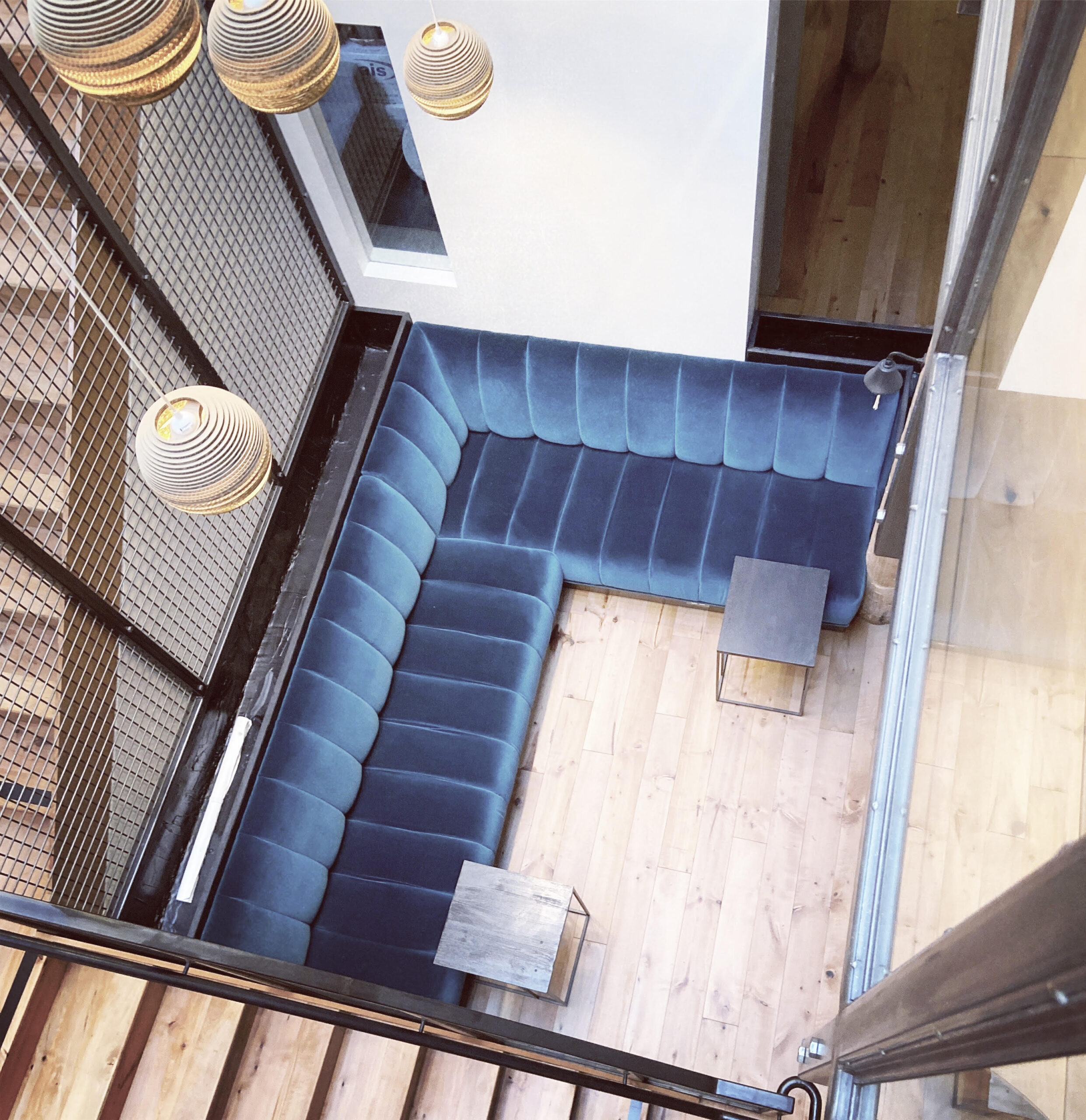 Soledad Alzaga Interior Design was hired to transform this industrial office space into a warm, inviting, yet professional environment. The design incorporated a custom velvet banquette and carefully sourced vintage furniture to achieve the desired aesthetic. Thoughtful touches, such as rich textures and unique decor pieces, were added to create a balance between the industrial elements and a welcoming atmosphere.